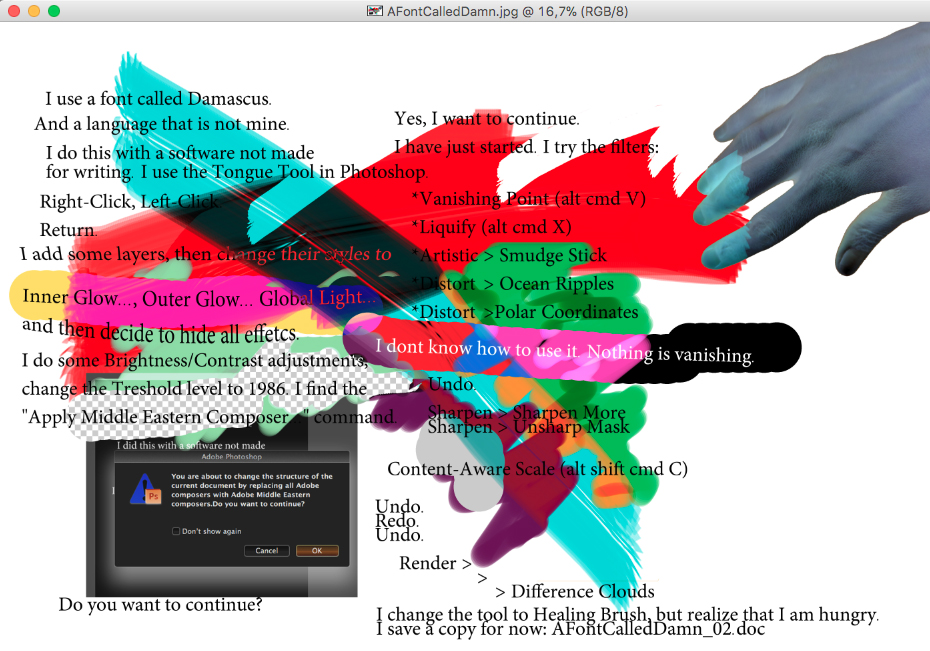 Whether with words or images, the work of Mirene Arsanios, Alex Cuff, Setareh Shahbazi and Sam Wilder engages translation as a means of introducing foreignness within the self, rather than translating otherness to others.