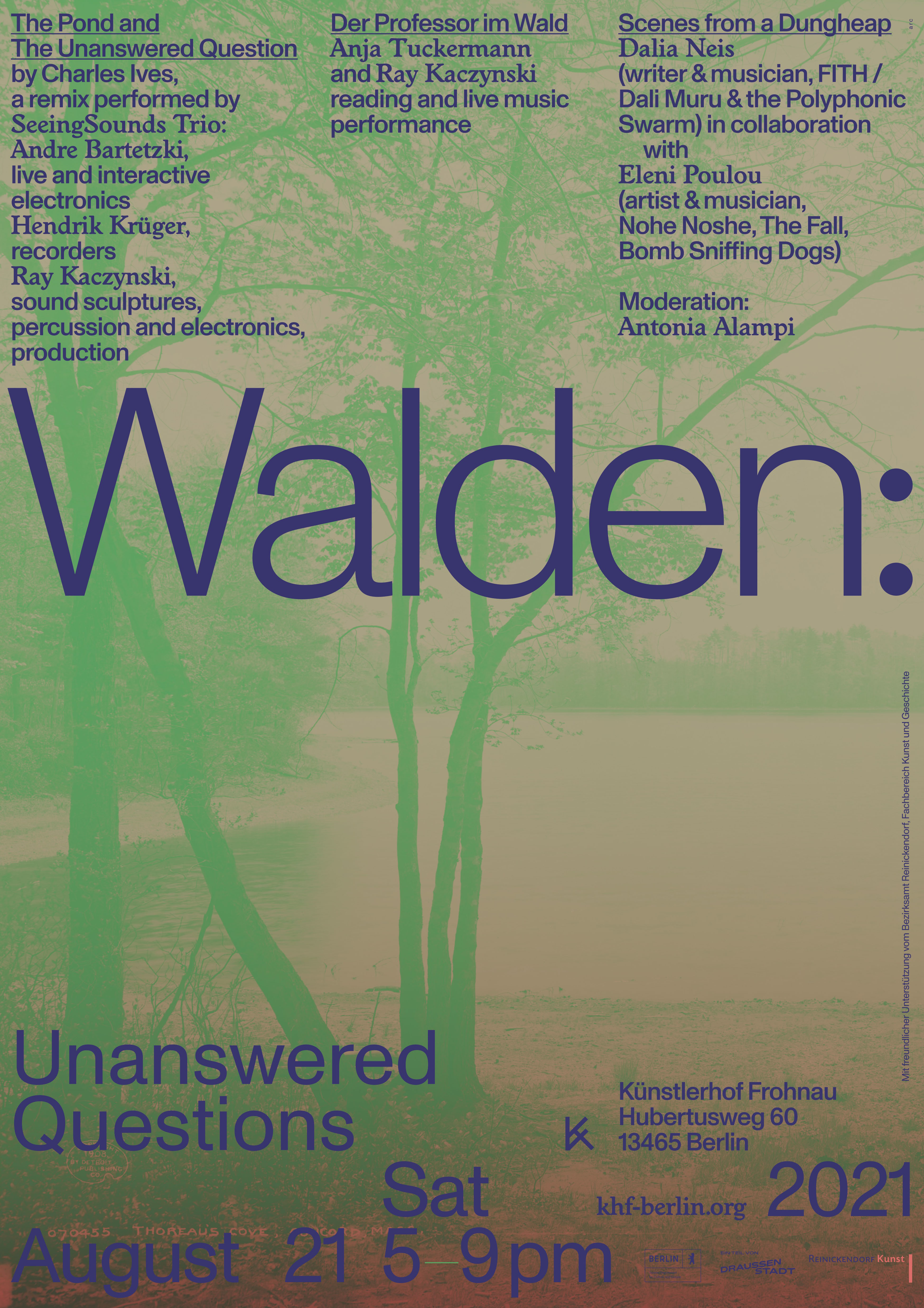 Walden: unanswered questions marks the beginning of an ongoing reflection on ideas and practices of retreat/into nature and their re-contextualization within contemporary practice- and community based formats.